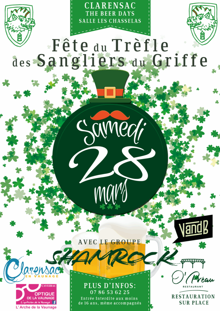 Après le succès de l’édition 2025, la Fête du Trèfle revient à Clarensac ! Au programme : concert du groupe Shamrock, restauration par O’Préau…